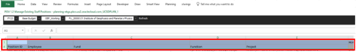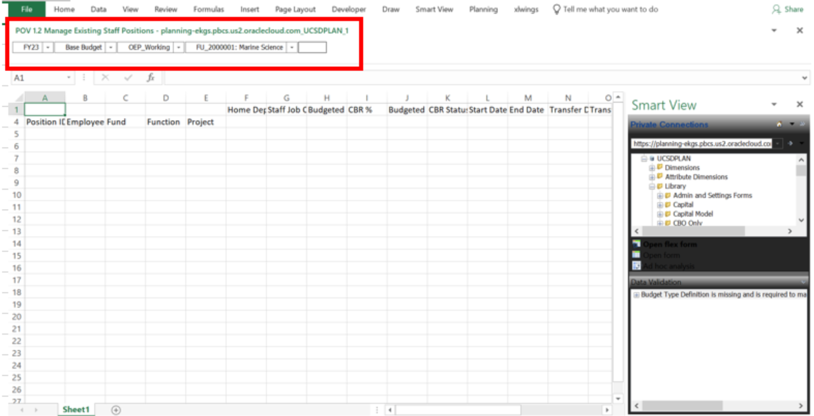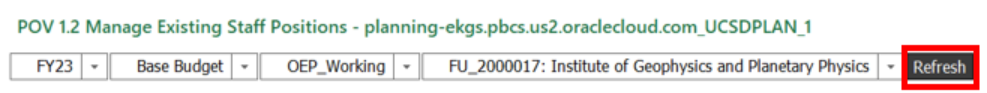 3. With the form rendered, ensure the desired POV selections are populated. If any changes are made in the POV, refresh the sheet before proceeding to step 4: