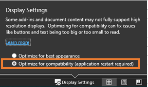 A: To fix, at the bottom of the Excel window, locate Display Settings and select Optimize for compatibility (application restart required) then restart Excel.