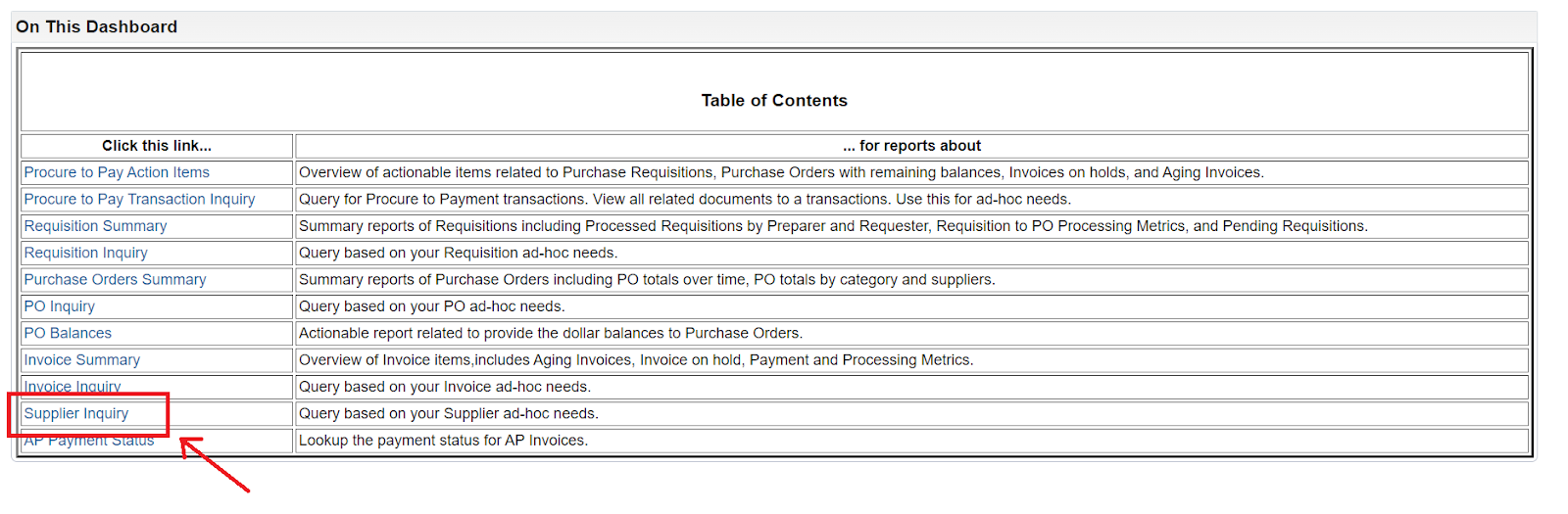 This article is a guide on how to access and navigate the Supplier Inquiry Report. Specifically, for inquiries based on your Supplier ad-hoc needs within the Procure-to-Pay Panorama.