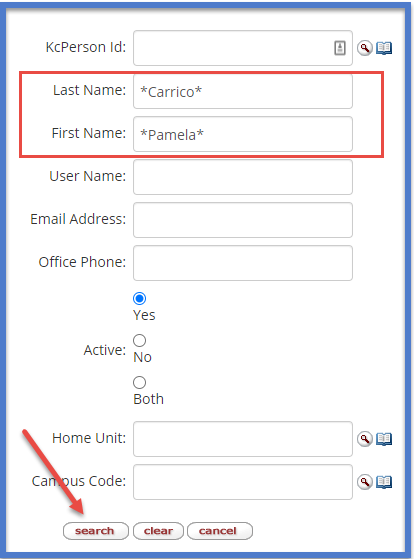 3. Enter the Requisitioner by Last Name, First Name and click on search and select return value next to the correct name