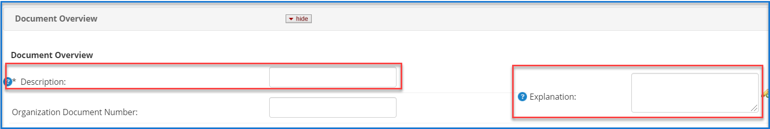 2. Navigate to the Description Field and enter "Requisitioner Update", then provide an explanation in the Explanation field: